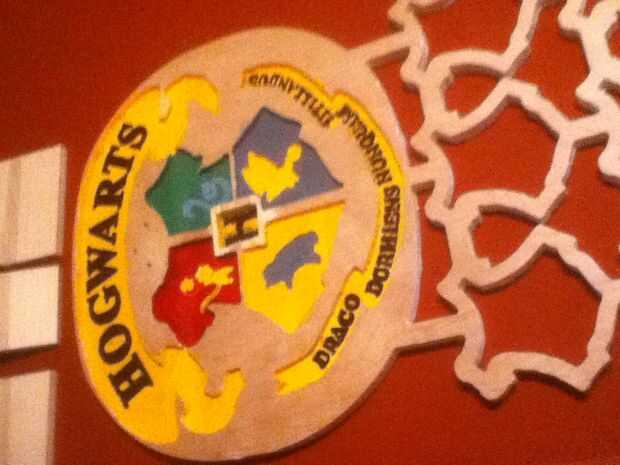 Te sobra todos las razones de por qué ocurrió este proyecto, pero el fondo es simplemente fue un proyecto casero de que mi esposa se metió así en nuestro dormitorio. Somos una de las paredes decoradas en nuestro dormitorio en un tema de Harry Potter.