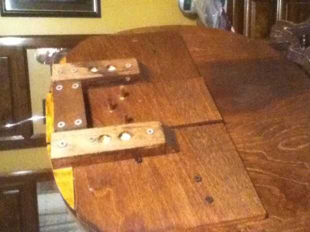 La segunda imagen muestra el soporte extraíble. Tiene 3 espigas de madera que se ajustan a través de los correspondientes agujeros en la tapa de rejilla de bufanda. Que, junto con un pedazo de la chamusquina de velcro permite la suspensión soportar el peso del rack todo en un armario colgador.