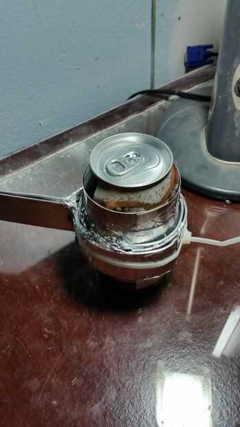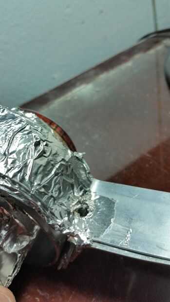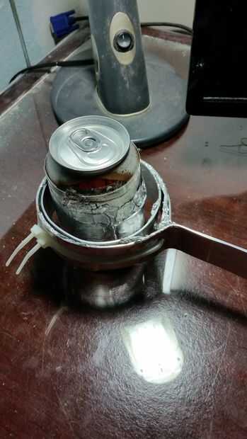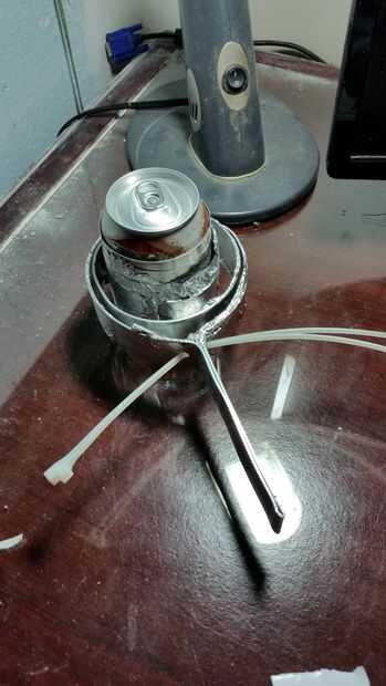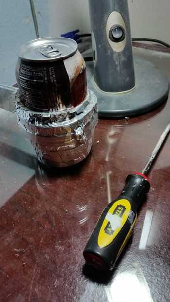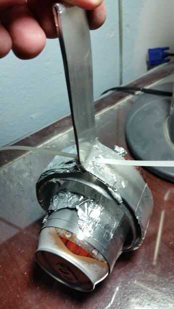 Sé un remache habría sido la solución aquí, pero no pueden encontrar minas e iba de menos herramientas y material posible. La estrategia inicial era simplemente cinta adhesiva, pero que sabía rodar para arriba metal crearía un resorte radial ;)