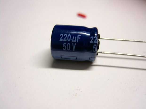 - Un condensador grande, como este de Digikey (220 uF, 50V). Asegúrese de que al menos es clasificada a 16V si vas a conectar a una batería de 9V, o tendrás un mal momento. -$0,40