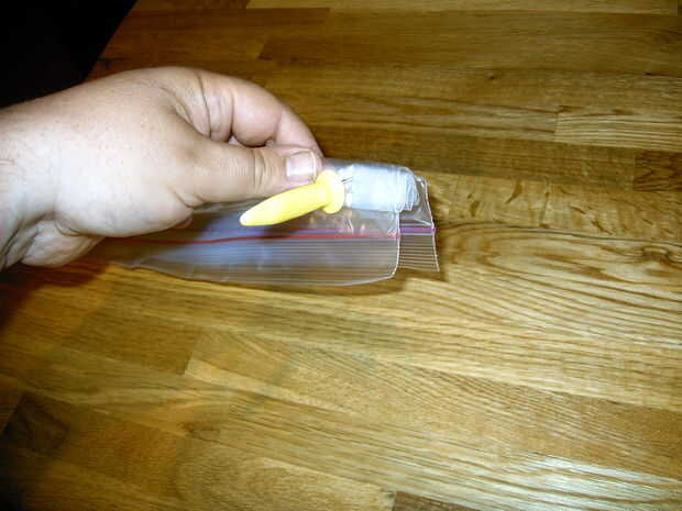 Cerrar la bolsa y luego lo perforan, necesita algo más gruesa que una aguja para hacerlo. Estoy usando un soporte de mazorca de maíz y obtener 2 agujeros por el precio de uno!