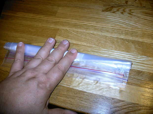 Me gusta tener las bolsas llenas hasta un tercio de su capacidad y dóblalo para hacer una buen losa aproximadamente 1.5 pulgadas (40 mm) de espesor.