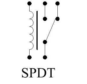Un relé es un interruptor controlado por un voltaje de ajuste. Que estamos utilizando es un dispositivo terminal 5. 2 de los terminales de la bobina del relé de control. Cuando el voltaje en la bobina está por debajo de la tensión de la recolección, se hará una conexión. Cuando el voltaje en la bobina está sobre el voltaje de la recolección, se hará la otra conexión. Esto es un relé SPDT o simple polo doble tiro.