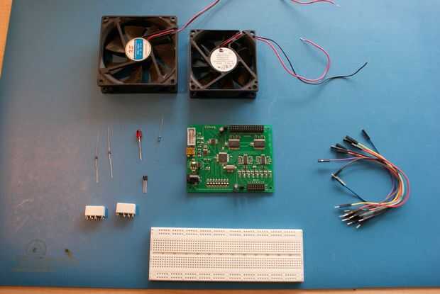 En esta demo voy a mostrarle cómo puede usar el controlador de Servo inteligente para encender y apagar los ventiladores con un sensor de temperatura. El proyecto utilizará dos ventiladores conectados a dos diferentes relés. Los relés se conectarán al regulador Servo inteligente. Un sensor de temperatura IC está conectado a la SSC (controlador de Servo inteligente). También se conecta un LED que parpadea sólo por diversión.