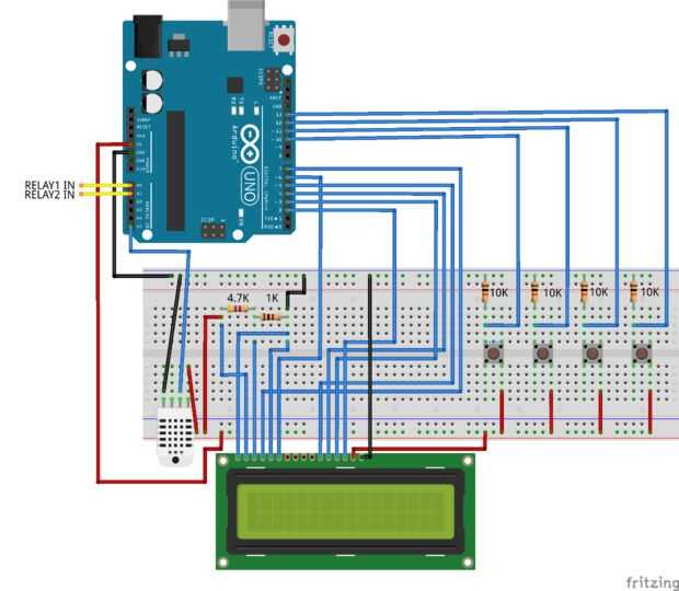 Para construir (y eventualmente modificar el proyecto) sería necesario conectar todos los componentes según el esquema que se adjunta a este paso y cargar el código en el microcontrolador de Arduino.