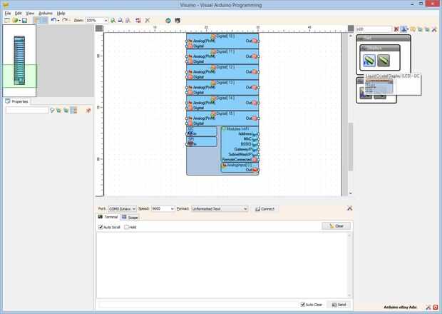 Temperatura DHT11 de control remoto Wi-Fi una I2C de humedad pantalla LCD 2 X 16 dos ESP8266 y Visuino (14 / 19 paso)