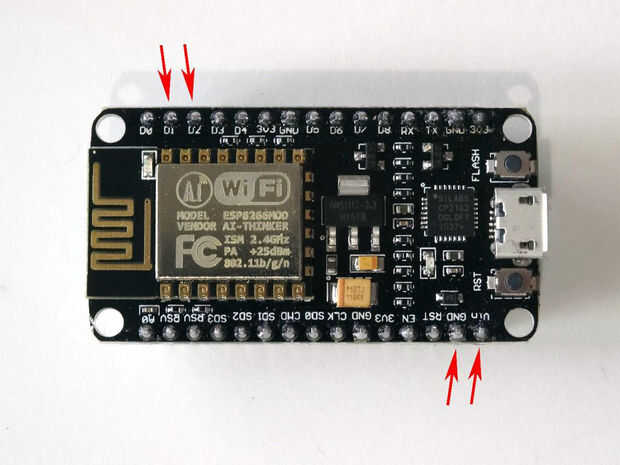 6. Cuadro 4 muestra dónde están los tierra, 5V(Vin) poder, 1 Digitaly Digital 2 pernos de NodeMCU 1.0