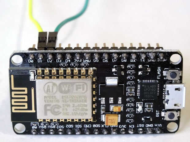 2. Conecte el otro extremo del cable SCL(cable amarillo) al pin SCL/Digital 1 de la Junta de NodeMCU de ESP8266 (foto 2)