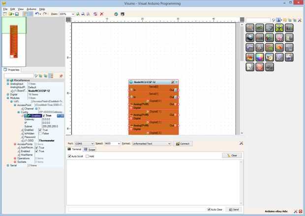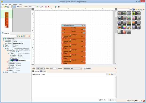 Temperatura DHT11 de control remoto Wi-Fi una I2C de humedad pantalla LCD 2 X 16 dos ESP8266 y Visuino (5 / 19 paso)