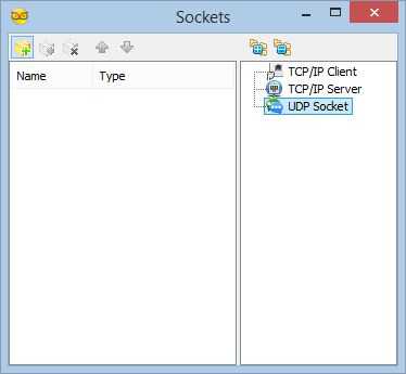 2. En el editor de tomas seleccione "UDP Socket" a la derecha y haga clic en el "+" botón a la izquierda (foto 2)