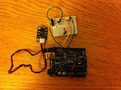 El termómetro se une a los 5v y tierra y alimenta en el pin A0.