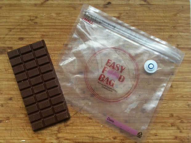 Estamos utilizando una barra de 100g de chocolate pero puedes hacer varios juntos como usted tiene una bolsa / y baño bastante grande.
