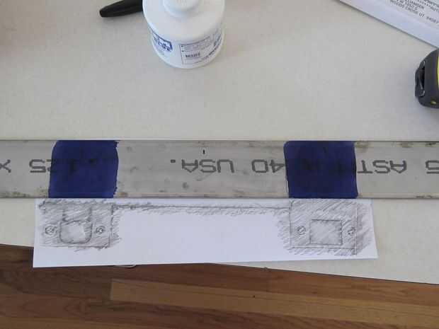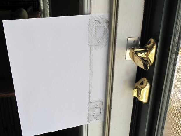 Una vez que tengas tu material, es tiempo para transferir las ubicaciones de las capturas de su cerradura y pestillo. Puesto que estas capturas son generalmente amables de "sintonizado" durante la instalación, y mina se establecieron más o menos exactamente donde me gustaría, he decidido que la mejor técnica para obtener las dimensiones sería scrub-trace ellos y ahorrarme muchos problemas tratando de medir todo. Si usas esta técnica, * que * conseguir el borde del marco de la puerta como referencia ya que es la distancia entre el frente del marco y el borde delantero de la placa de captura que determinan cómo firmemente su puerta se cierra (o no cierra).