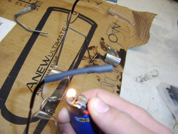 Su encendedor o fósforo y ronda de all'way tubo del encogimiento.