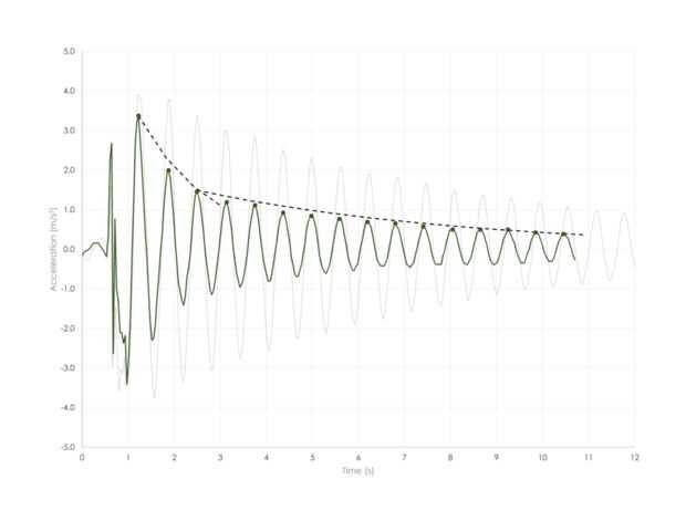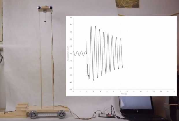 • El péndulo que hace pivotar de la cerradura y ajuste el balanceo del edificio. Los datos del acelerómetro mostrará la amplitud de pico y el lento decaimiento del movimiento.