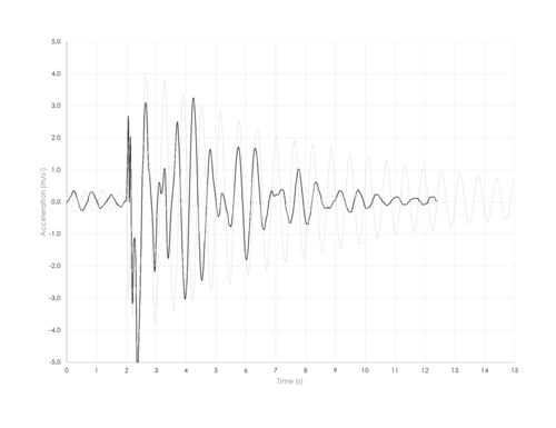 • Conjunto del edificio se sacude otra vez. De la energía cinética debe ser transferida en el péndulo que amortigua el movimiento. El movimiento debe decaer mucho más rápido.