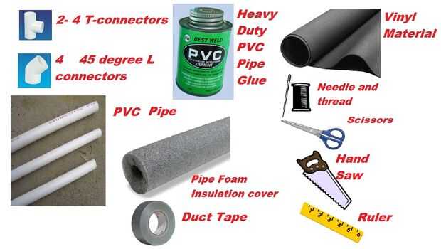 Podrá también necesidad de resistente PVC pegamento en cola los tubos juntos, aislamiento de la pipa de espuma de relleno y material para cubrir el reposacabezas. Tijeras, marcador y conducto cinta también se requiere.