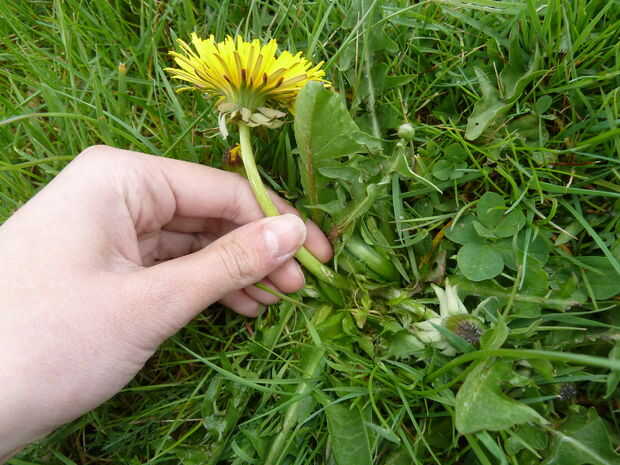 Toma un diente de León. Puede ver el blanco 'jugo' que sale del acero. Pulse sobre las plantillas para llenar para arriba.