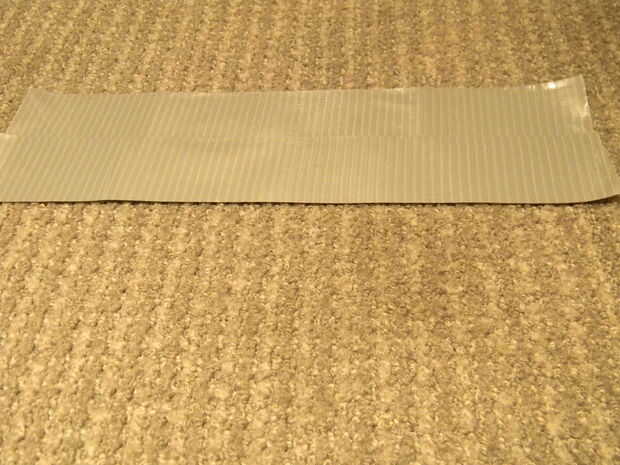 2. toque la parte superior de una tira de cinta de conducto a la parte inferior de otro (lado pegajoso hacia lo mismo)