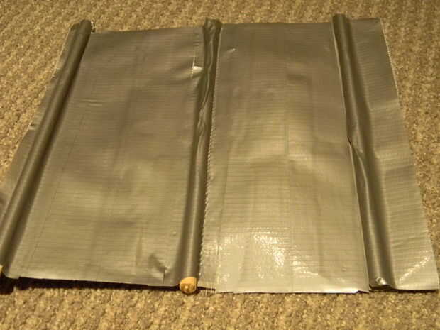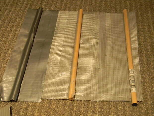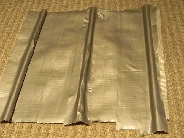 volar sobre una patineta en su nuevo windsurfista de cinta de conducto!Paso 1: Lo que se necesita 3 o 4 rollos de cinta adhesiva para conductos (marca Ace es el mejor, es light)TijerasPeriódico2 palos rectosPaso 2: Grabar el conducto 1. Colocar 4 hoj