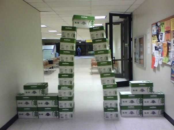 - cajas de papel de computadora (tengo una docena en mi biblioteca local, oficina edificios tendría un montón de extras, también. Prácticamente en cualquier lugar tiene varias impresoras en uso)