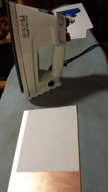 Todavía estoy tratando de perfeccionar este paso. Acabo de cortar el diseño y mantener apretado en la esquina de la placa de cobre antes de que planche en la placa. Dejo bastante papel en un lado del diseño que puedo mantener mis dedos fuera del camino ya que el calor se arrastran a través de la Junta y quemaduras.