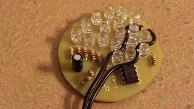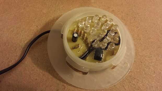 Usé un poco de pegamento caliente para cubrir el chip 555 para impermeabilizar un poco. También caliente pegué el anillo superior hacia abajo para mantener todo en su lugar.
