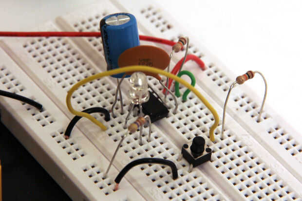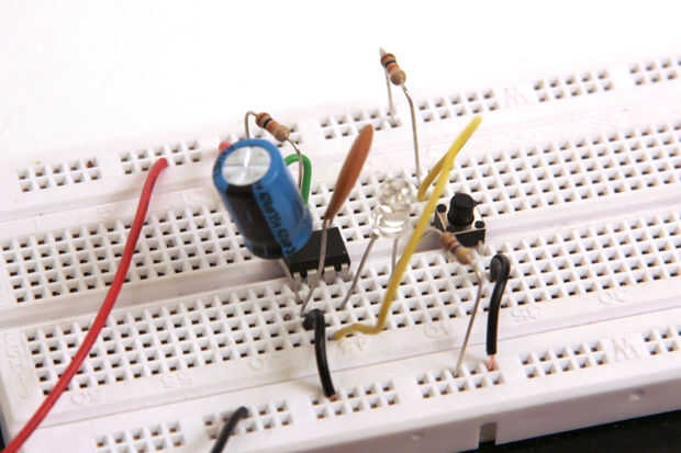 Pulse el botón. El LED debe iluminar por un tiempo y luego apague. Si tiempo el LED, encontrará que enciende durante exactamente 5,17 segundos, tal y como calculado por encima.