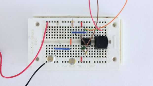 Siempre es una buena idea de prototipo de un circuito en un protoboard antes de soldar juntos. Esto es especialmente cierto cuando se trabaja con fotorresistores porque no tienen valores estándar. Puede que necesite cambiar el valor de la resistencia serie para compensar iluminación.