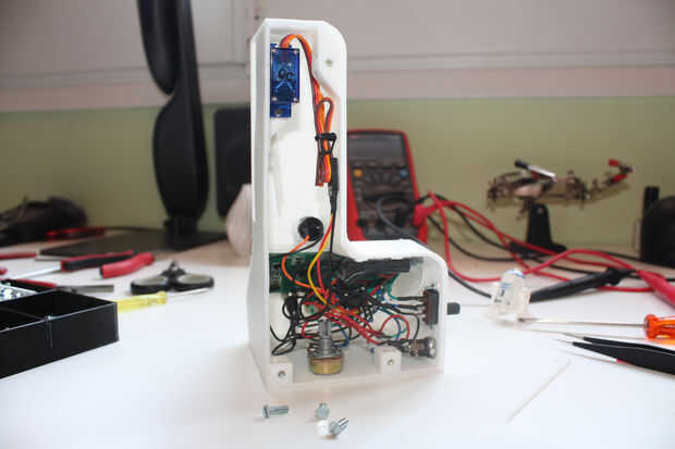 Conecte todos los componentes a las piezas impresas 3D con tornillos o con adhesivo, y listo! Feliz té tiempo :)