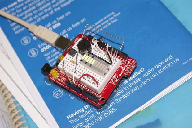 El arduino, ordenador portátil, protoshield y Cable USB excluido; Tomé cada componente eléctrico de un aparato viejo o roto. Intente reciclar cosas, es fácil de conseguir roto electrónica gratis así que la mayor parte de él! ¿Ver cualquier puentes en este diseño? No, clips de papel son mucho mejor - barato como patatas fritas y más robusta también! :)