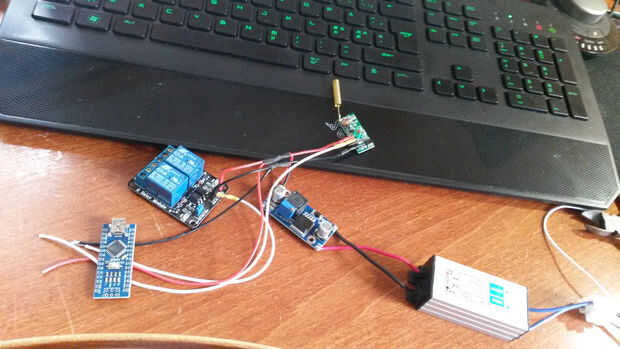 Conecte todo, y si desea puede probar el circuito ahora antes de que se insertar en el recinto mediante la conexión de la fuente de alimentación de 12v a una fuente de alimentación de CA.