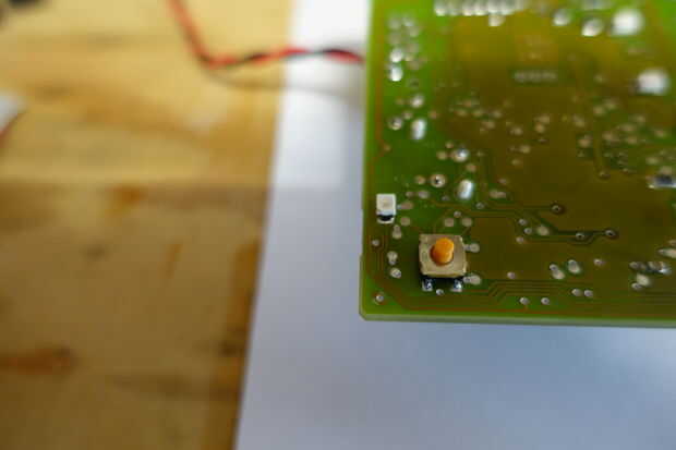 Mirando la lavadora placa de circuito impreso (PCB) el botón se encuentra en la esquina inferior izquierda "Inicio". Es una tarea fácil 'paralelo' a este botón con un par de alambres soldado a las almohadillas montadas superficie.