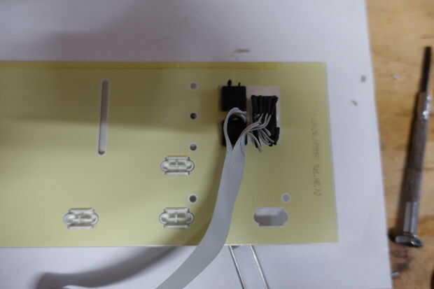 El panel frontal es una tira de policarbonato (o algo muy parecido) las etiquetas están impresas en el reverso y luego una aplicación de pintura blanca proporciona un fondo opaco. Si se frota la pintura blanca de una 'ventana' se puede hacer en el panel. Lo hice tan cuidadosamente como pude pero los resultados no son perfectos. La técnica que utilicé fue el siguiente:
