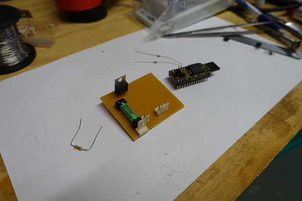 He mostrado un diagrama del circuito y algunas fotos de la Asamblea de los componentes en un pequeño trozo de placa perforada de PCB.