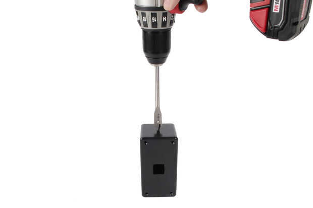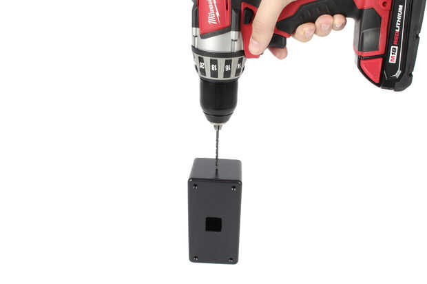 Perfore un orificio piloto de 1/8" en el centro de uno de 2" x 2,5" lado de la caja.