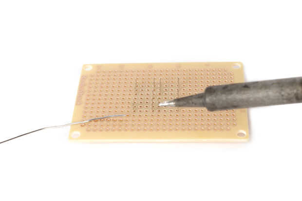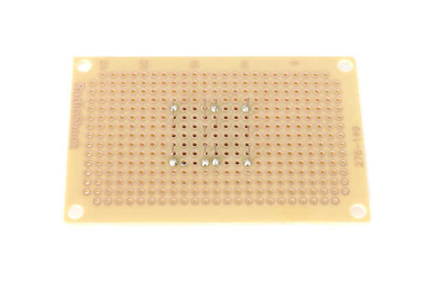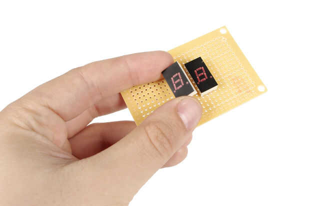 Centro de los dos displays de 7 segmentos por lado en el tablero de PC. Mantener en su lugar por cada uno de los pernos de esquina de la pantalla de soldadura.