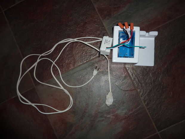 Tratar al final del cable de extensión con los dientes como el cableado de la casa; conectar ese cable negro (con cinta) al cable negro del interruptor con tuercas para alambre.