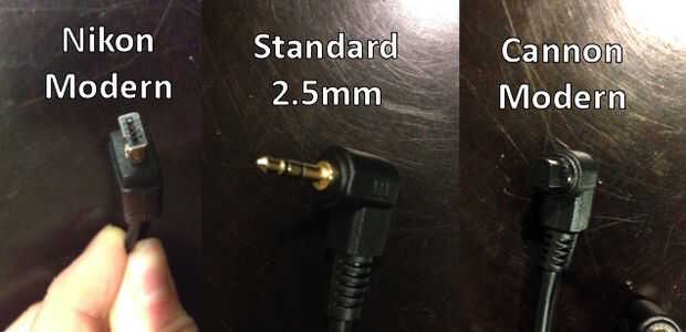 Hay tres tipos principales de control de enchufes. Estándar (2,5 mm hembra) Nikon moderno y cañón moderno, los tres están en la foto superior. La mayoría mayores DSLR de SLR uso estándar enchufe pero Compruebe siempre su cámara para asegurarse de que como hay muchos tipos de conexión diferentes.