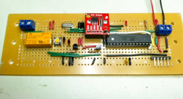 El bloque de terminales de la derecha es la entrada de voltaje para el circuito del microcontrolador y el relé.