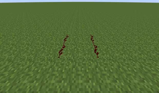 Coloque dos piezas de redstone formando una línea. Luego, hacer otra línea de polvo redstone 2 paralelo al otro.