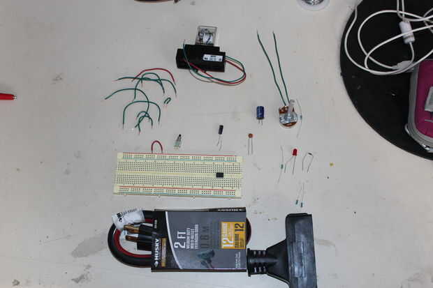 * Algunos condensadores, resistencias y una resistencia variable (a menudo llamado un potenciómetro). En este ejemplo, se utiliza un potenciómetro de 1Mohm, un condensador electrolítico de 470 o 1000 uF, 2 resistencias de 10Kohm, 1 50Kohm resistor, condensador de 1 0.1uF (electrolítico) y 1 .01uF condensador (cerámica)