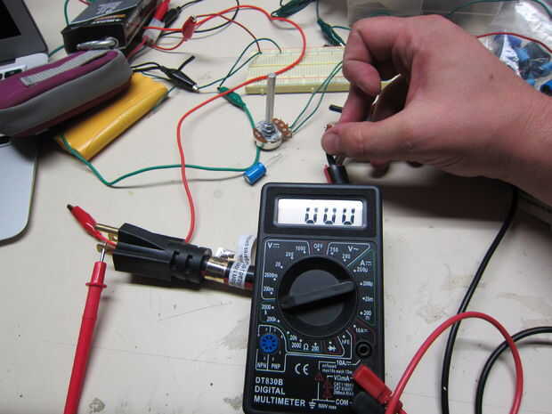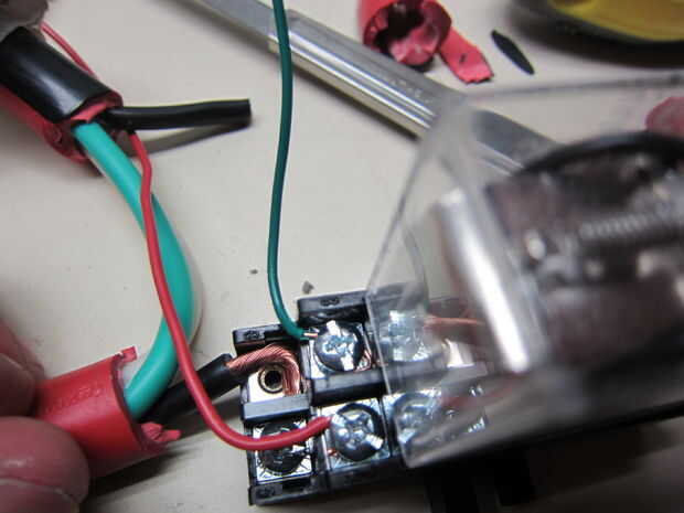 Tornillo de cada lado del hilo en los terminales de los puntos de contacto normalmente abierto en el relé y hacer una prueba final - con un multímetro en modo de resistencia en el cable de AC de la hoja caliente del enchufe a la toma de caliente en el recipiente, asegúrese de que cuando el dispositivo está apagado, no hay ninguna continuidad. Encender y activar el dispositivo y asegurarse de que no hay ninguna resistencia cuando el relé se energiza. Luego asegúrese de que no exista ninguna continuidad otra vez apaga el relé. Probar esto unas cuantas veces para asegurarse de que él acciona confiablemente y también probar el temporizador con el potenciómetro en la resistencia máxima.