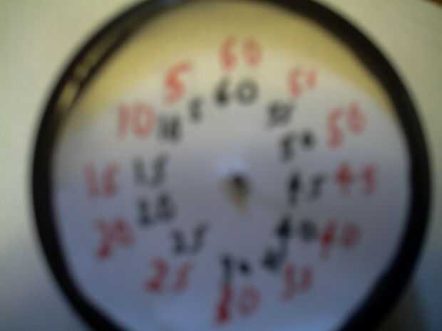 Donde el 12 es marca 60 o 0 en rojo (si su segunda mano es de color roja) y en 1 Marque 55 en rojo. en 2 puesto 50 en rojo. 3 había puesto 45 en rojo. y a seguir así. En el 11 puesto 5 en rojo.