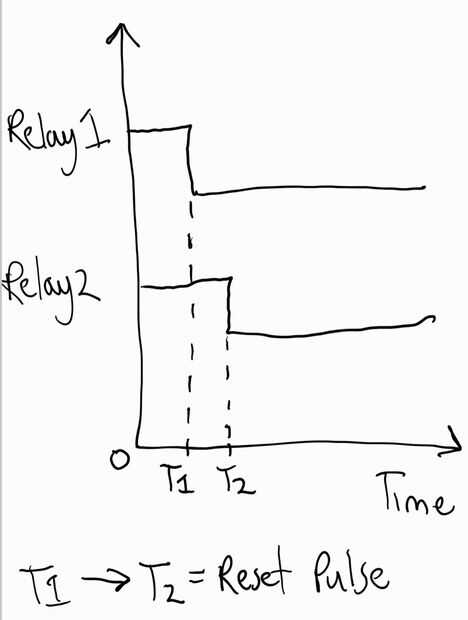 Pulse para restablecer la placa base. Ambos relés tenían sus alimentación y disparo las entradas en paralelo.
