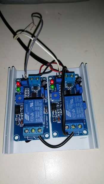 Cada relé tiene un potenciómetro para ajustar el tiempo del relé voluntad denergize. Relé 2 tiene una caducidad de tiempo un poco más de 2 segundos.