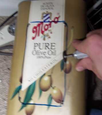 Si opta por seguir mi ejemplo, sólo asegúrese de que el depósito de aceite de oliva esté vacío antes de continuar. Todo lo que tienes que hacer es marcar aproximadamente donde la hendidura debe cortarse para el tablero electrónico del temporizador. Atornillar el circuito temporizador en la placa frontal del horno de microondas y mida y marque las dimensiones requeridas para la hendidura en el aceite de oliva pueden.