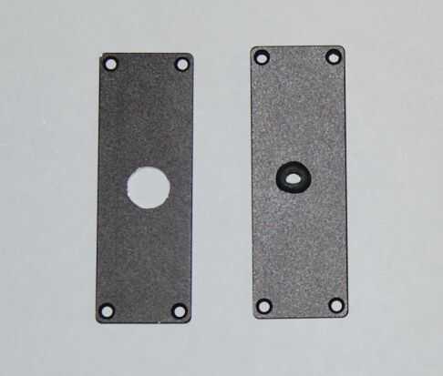 Es necesario un agujero de 5/16" en la pieza de un extremo y un orificio de 1/2" en el otro. Perforación de agujeros tan grandes en metal de hoja fino puede ser difícil. Usé una broca de 5/32" y agrandamiento de los agujeros con un escariador cónico como se muestra en la segunda foto.