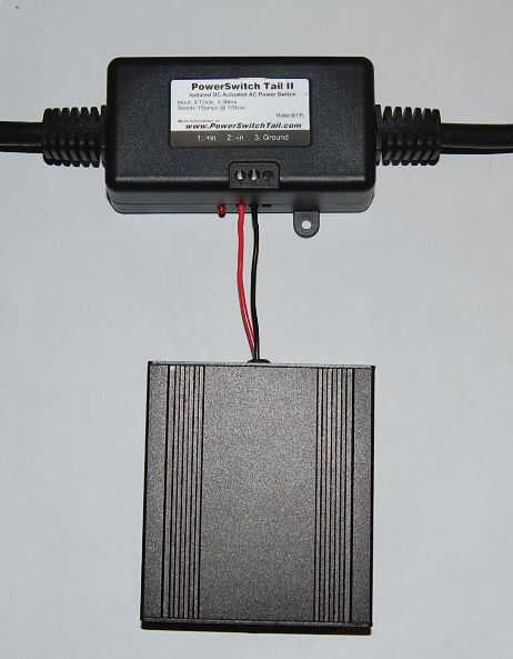 Conectar los cables a la cola de PowerSwitch para. El cable positivo (rojo) va en el agujero marcado 1: +, y el cable negro va en el agujero marcado 2:-en.