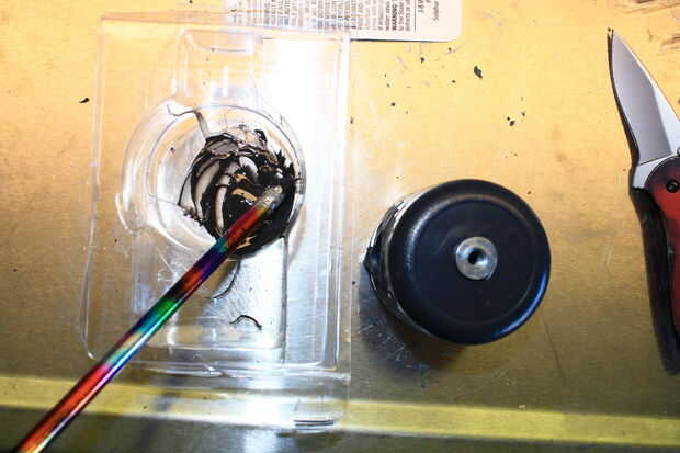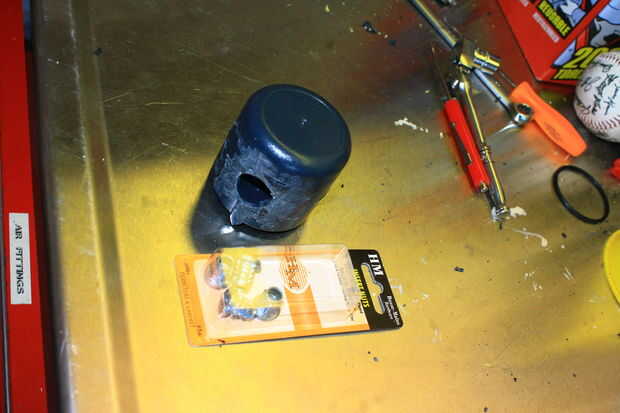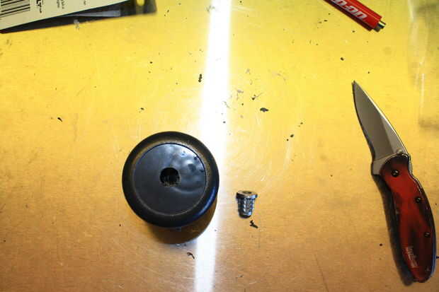 Mezclar un lote del epoxi, poner un poco en el agujero y alrededor de los bordes, luego martilló el 1/4 "x 20 tuerca inserto en descarga. Eso es todo allí está a él.
